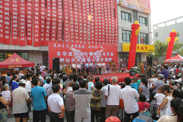 8月28日,在當地政府與社會各方的支持下,豐華超市銀楓街市開業取得圓滿成功。開業儀式上,山東省企業文化學會副會長戴衛平先生發表了熱情洋溢的賀詞,盛贊豐華公司堅持“誠信”文化愛心回饋社會的行為,執行經理張新一介紹了企業概況以及銀楓店籌備情況。開業現場,顧客蜂擁而至,店內各區域顧客摩肩接踵,選購著實惠的商品,體驗著各種便民服務。開業當天,還舉辦了愛心捐助活動,在新城街辦及社區的支持配合下,五百袋禹田生態大米通過豐華人的手,逐一發放到社區困難居民的手中,奉獻了愛心,傳遞著正能量。店外開業慶典和夜場演出互動高潮迭起,受到了社區居民朋友的熱烈歡迎。